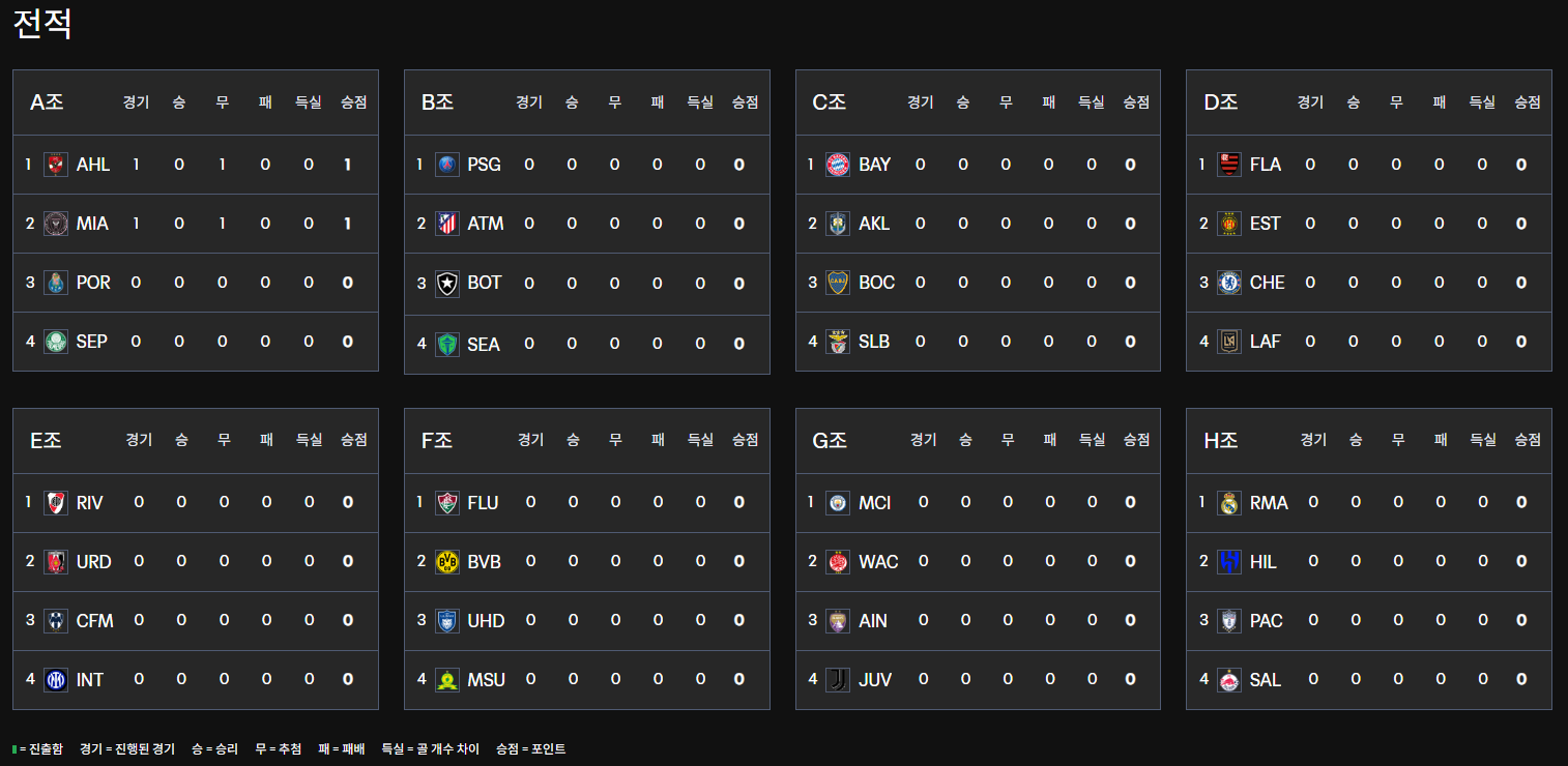 | A | 파우메이라스 | 포르투 | 알아흘리 | 인터 마이애미 |